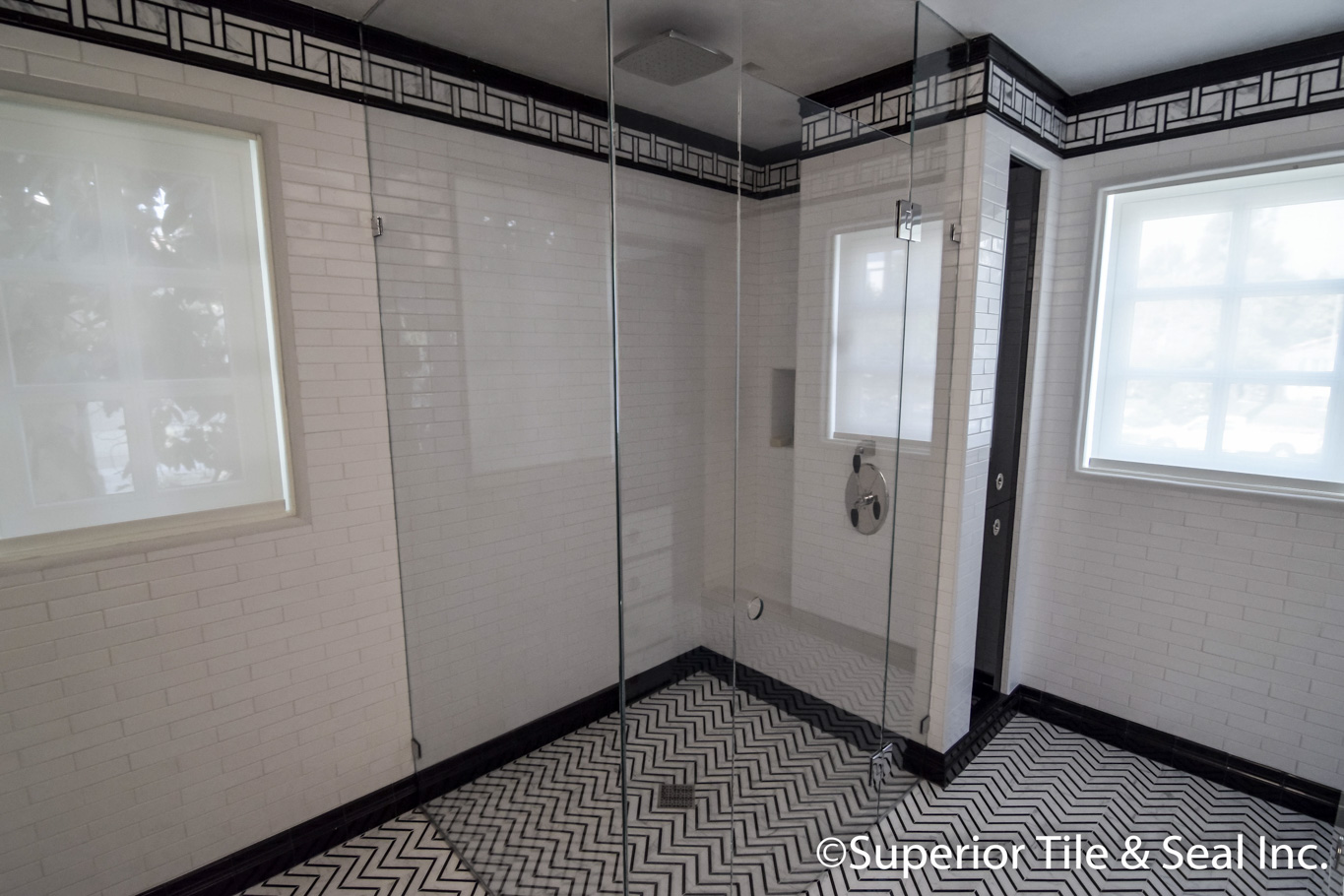 Bathroom-ChevronMarbleTileFloor-CeramicTileWalls-SuperiortileSealInc