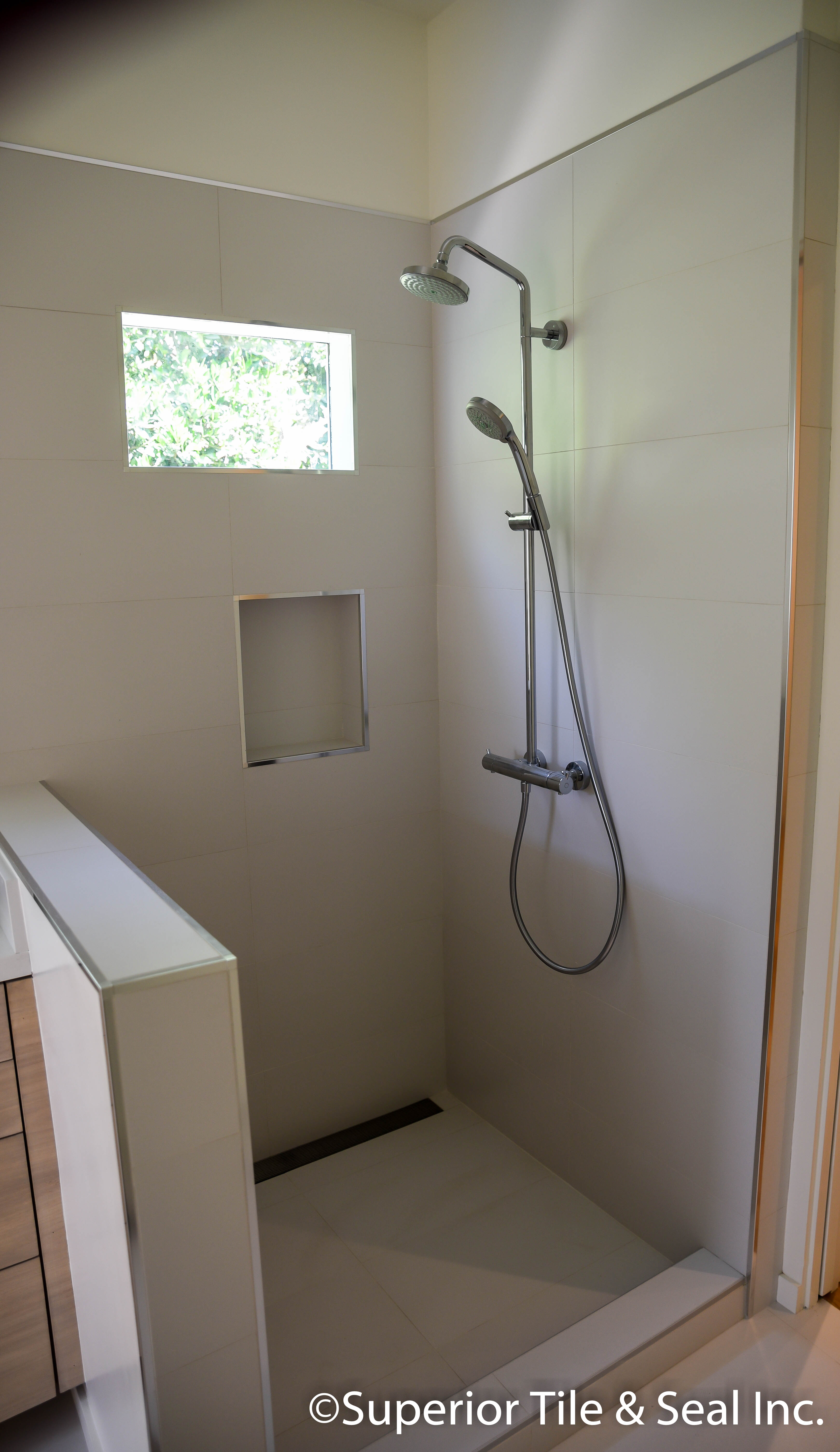 Porcelain Shower Tile Shower with Shluter Metal Trim