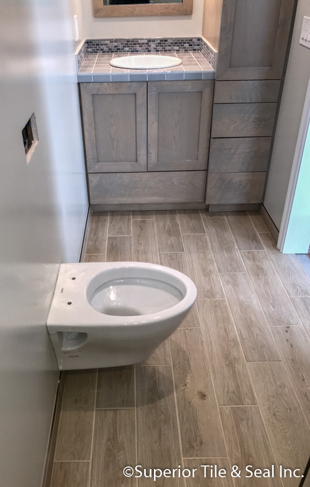 Wood Plank Tile Bathroom Floor