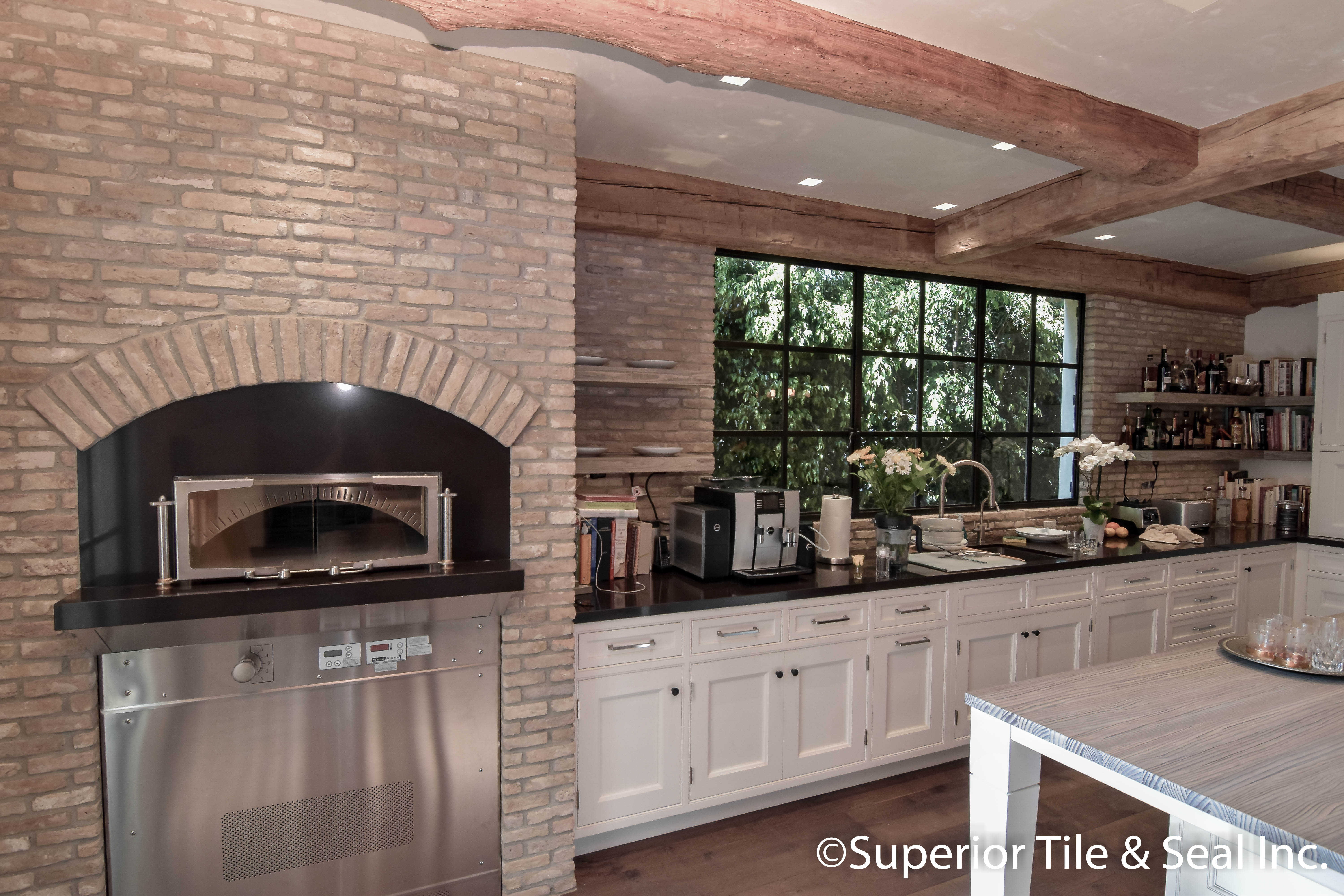 Hand crafted French Brick tile back splash with Quartzite counter tops.